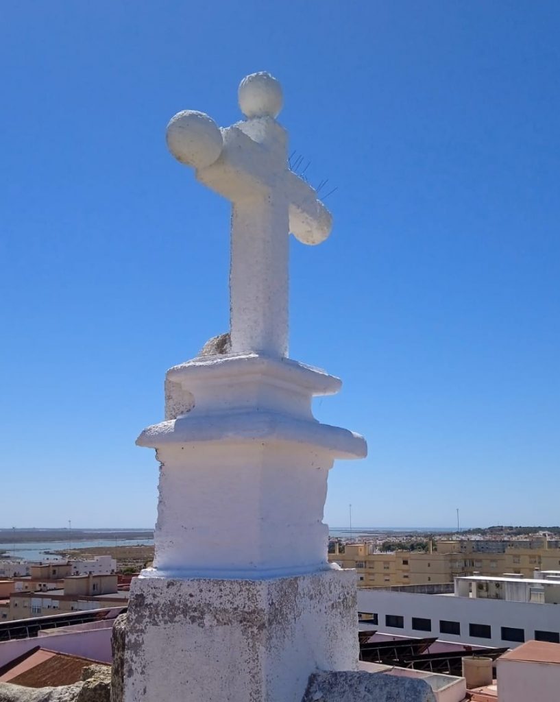 Arreglo de la cruz de la Iglesia del Carmen en San Fernando tras desprendimientos en la base de la misma.